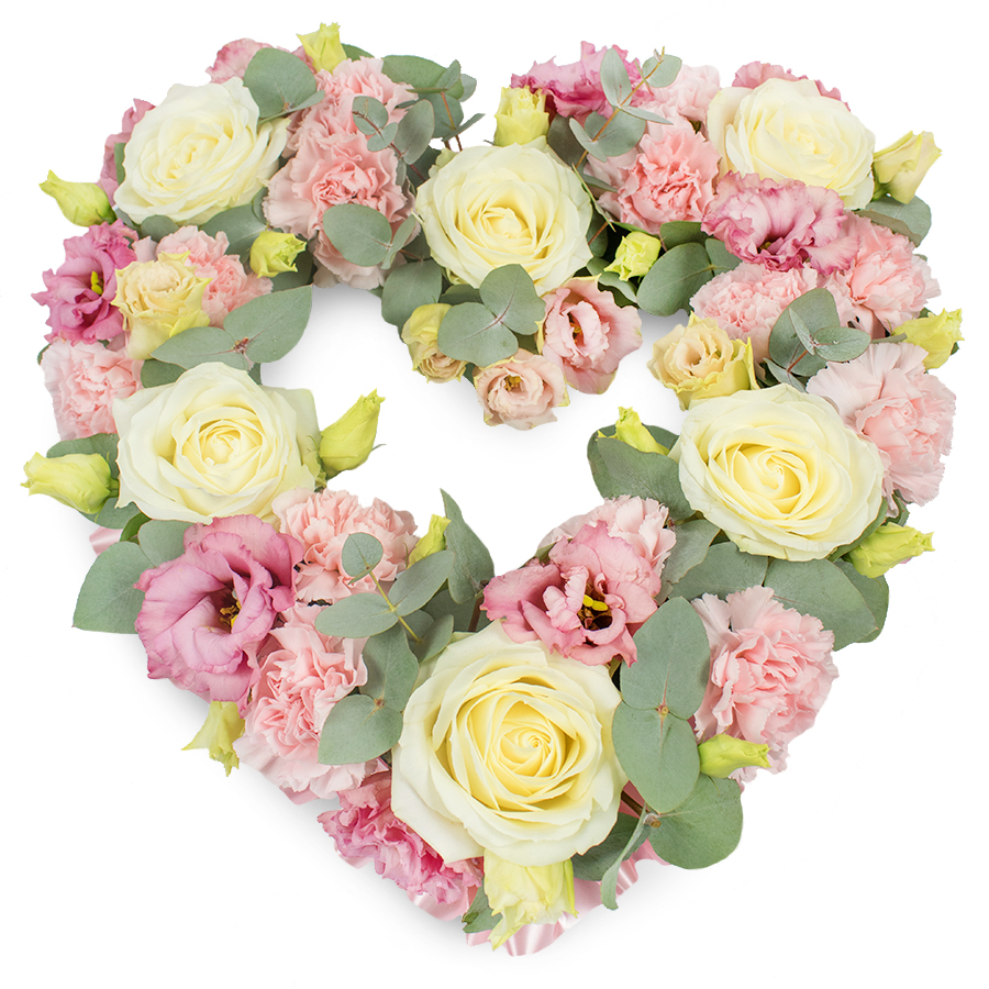 Delight in the unique beauty of this charming flower bouquet. Combining white roses, pink carnations, pink lisianthus, and vibrant eucalyptus, this arrangement is a perfect blend of elegance and grace.